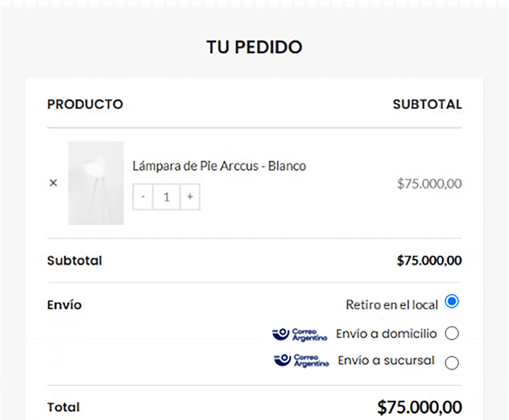 Además, podés sumar opciones como retiro en el local o envío con cadetería en tu zona.